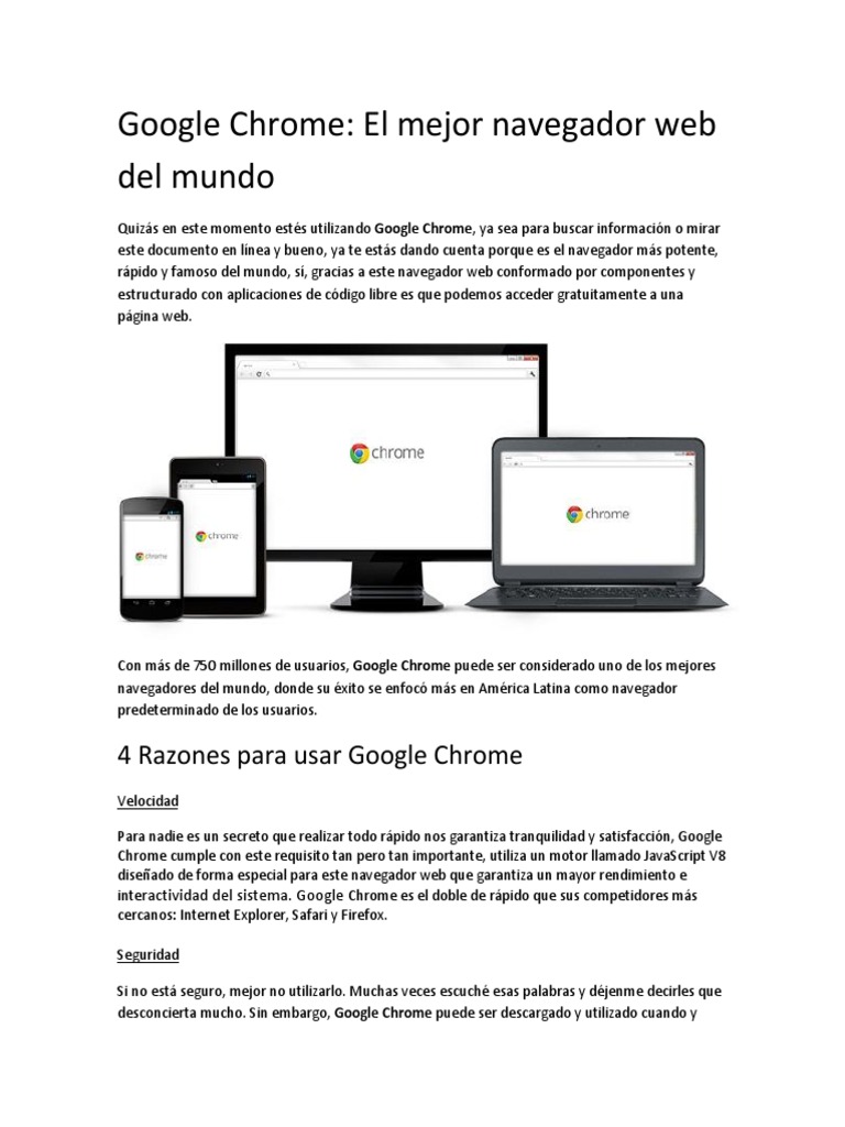 Google chrome es uno de los navegadores más populares y confiables de la actualidad. En primer lugar, google chrome es extremadamente fácil de usar. Descarga chrome gratis y verás por qué es el navegador más popular del mundo. Aunque a muchos no les gusta nada, a mí me funciona. Desde el lanzamiento en el 2008, google chrome ha estado haciendo mucho ruido en el mercado de los navegadores de internet.